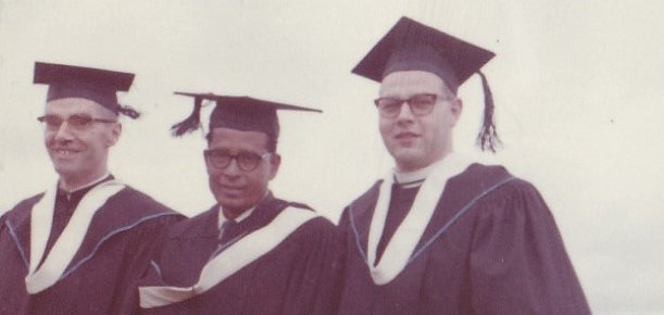 Joe Elsener (rechts) mit zwei Kollegen bei der Diplomfeier in Antigonish in Kanada 1964. Foto: Archiv SMB
