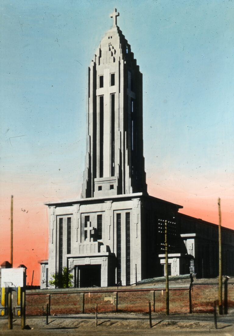 Das eindrücklichste Bauwerk des China-Missionars Eugen Imhof: Die Kathedrale von Qiqihar auf einer Aufnahme zwischen 1926 und 1939. (koloriert, Archiv SMB, FDC 118/10)