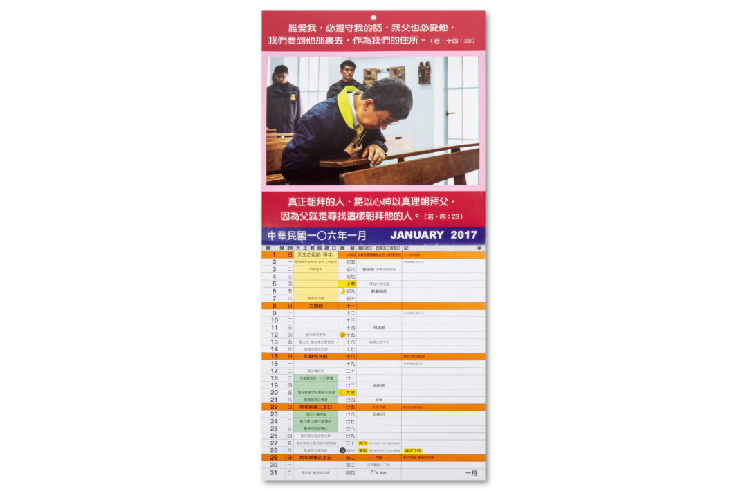 In den 70er-Jahren lanciert Gottfried Suter als Missionar in Taiwan einen Jahreskalender, der den interreligiösen Dialog fördern soll. Auf dem Kalender sind Feste und Feiertage unterschiedlicher Religionsgemeinschaften und der Zivilgesellschaft nebeneinander eingetragen. Neben staatlichen Feiertagen sowie christlichen und buddhistischen Festen wird auch der alte chinesische Kalenderm abgebildet, dessen Jahr zwischen 353 und 385 Tage umfassen kann.