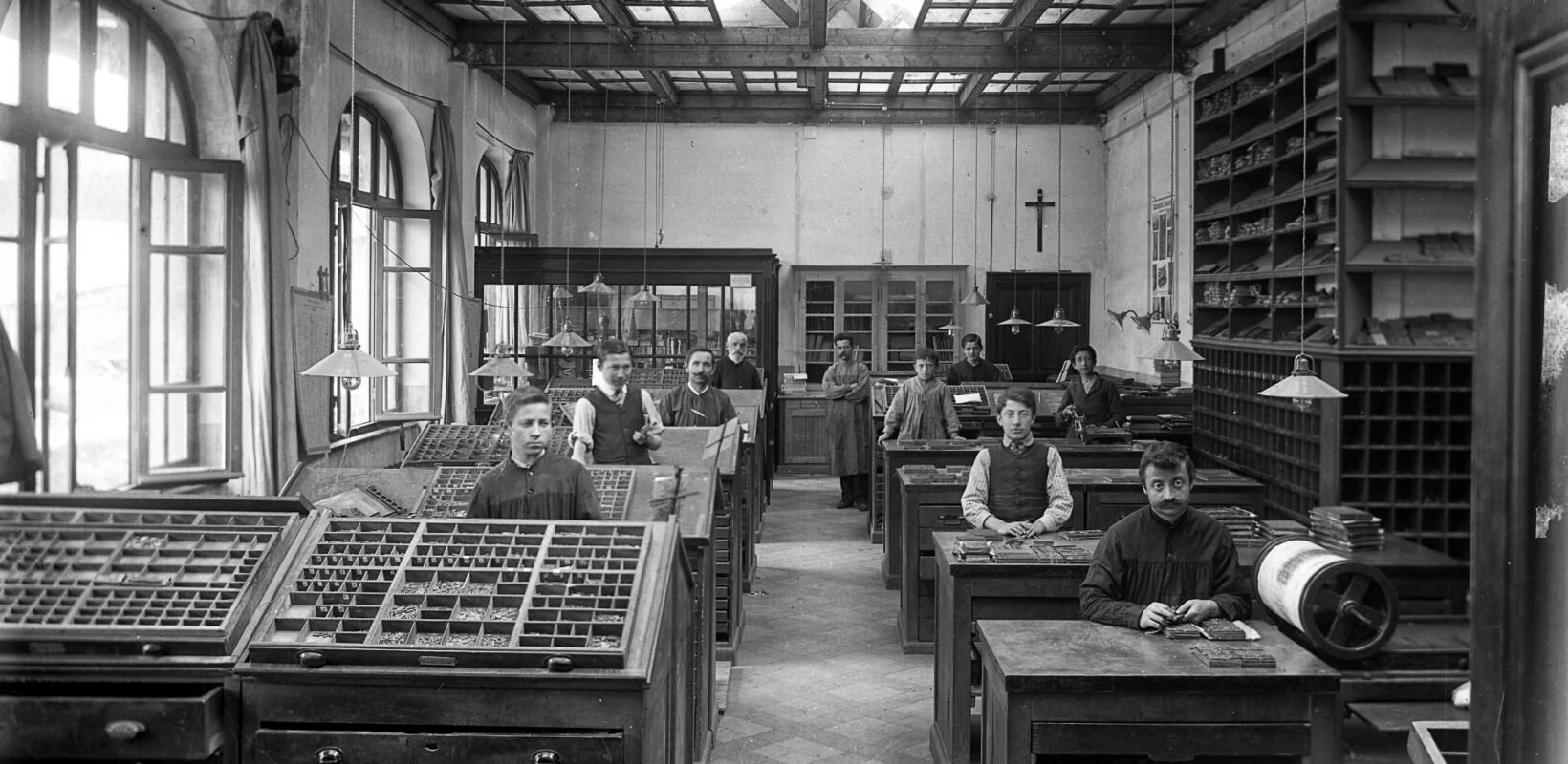 Titelbild: Die Schriftsetzerei im Missionshaus in Immensee im Jahre 1913. (Archiv SMB, FDC 115/321)