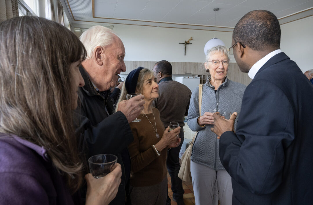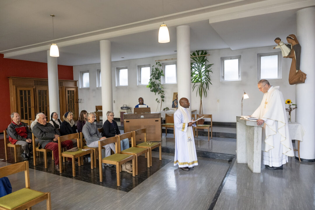 An der Eucharistiefeier unter dem Vorsitz von Ludovic Nobel, Generaloberer der SMB, nahmen etwa dreissig Personen teil: Mitglieder der Gesellschaft, Mitarbeiter und Bewohner des Hauses in Torry, Ordensschwestern aus Freiburg sowie enge Freunde der Gemeinschaft und von Abbé Pierre-Damien.