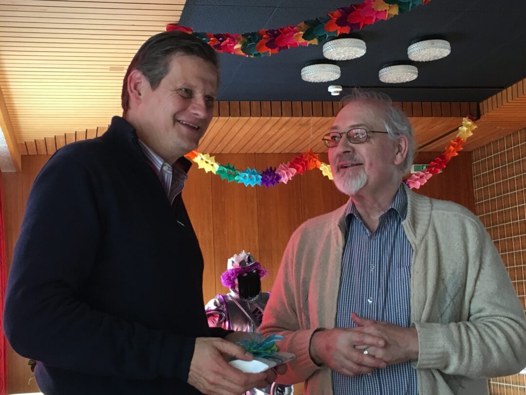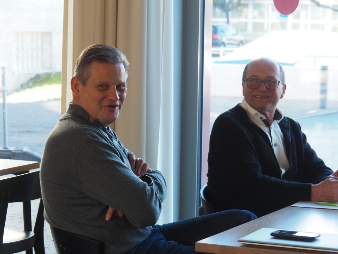 Patrice Riedo mit Markus Exer, VMB-Mitglied, im Bistro im Bethlehem im Jahr 2016.