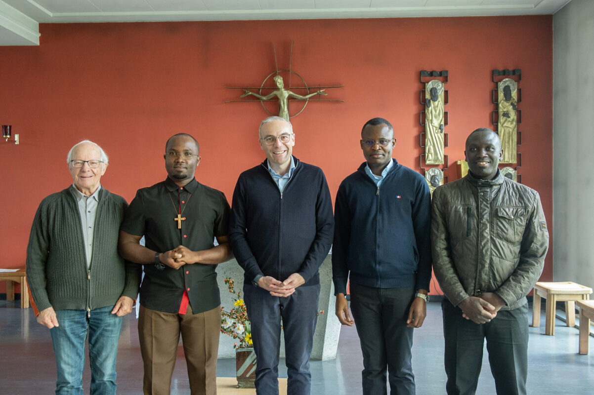 Von links: Josef Meili (Generalrat SMB), Jean de Dieu Twagirimana (Kandidat), Ludovic Nobel (Generaloberer SMB), Joël Mambe (Mitglied SMB) und Sylvanos Daka (Kandidat) im Missionshaus Torry in Freiburg.