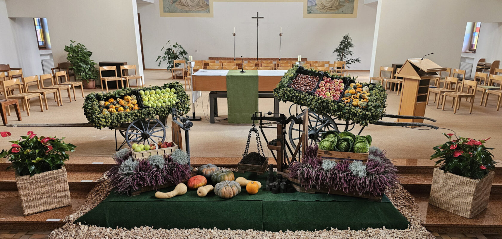 Die grosse Kapelle war reichlich gefüllt und prachtvoll mit Erntegaben aus der hauseigenen Gärtnerei geschmückt. Diese kümmert sich seit mehr als 30 Jahren um die Dekoration am Erntedankfest.