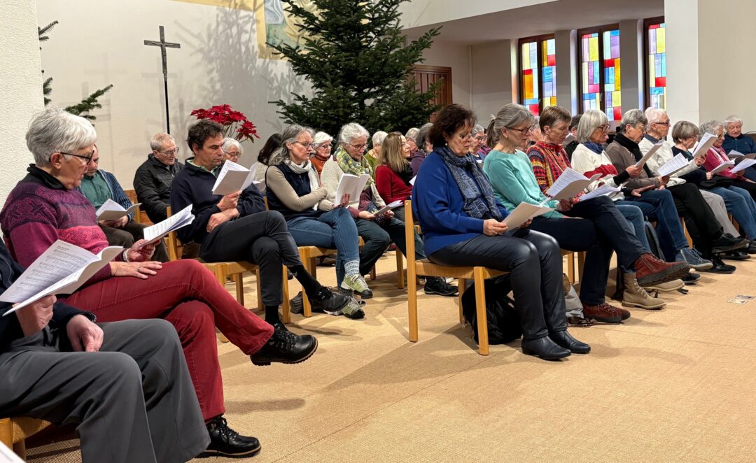 Eine halbe Stunde gemeinsames Singen in der Kapelle, angeleitet von Stephan Kaiser am Flügel.