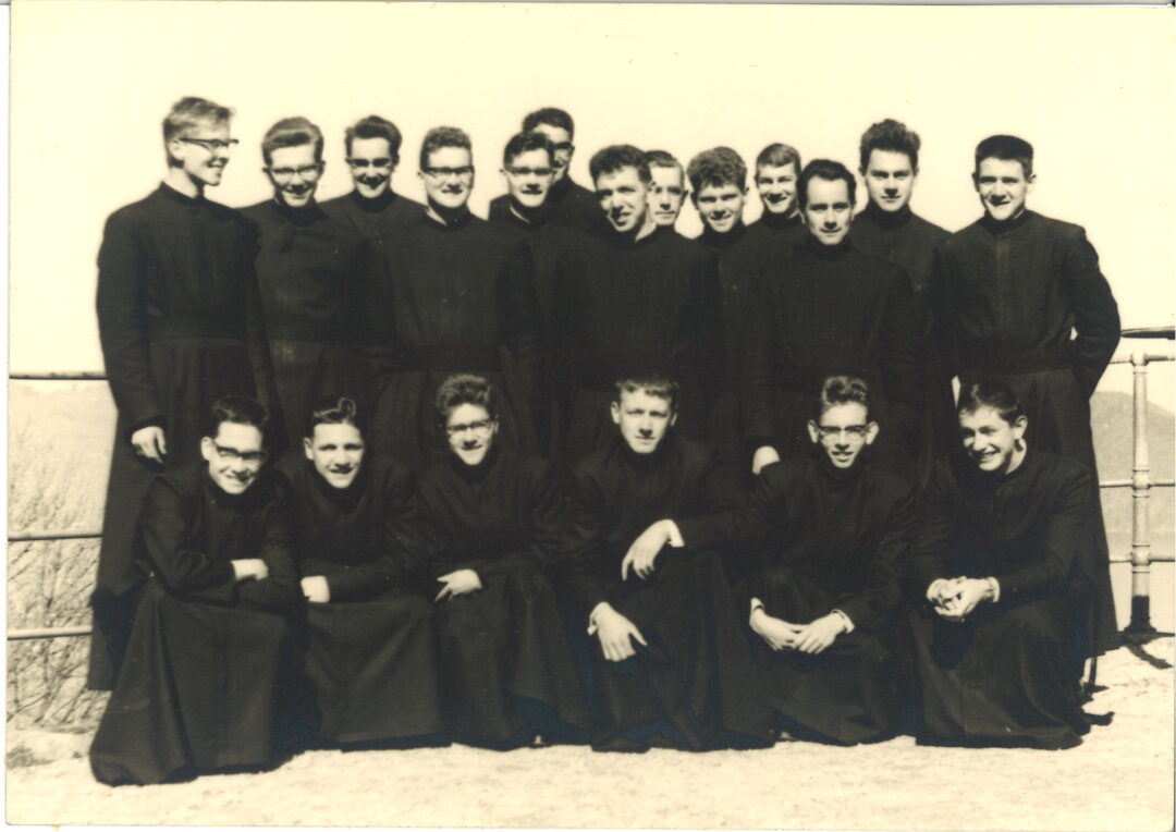 Das Noviziatsjahr 1961–1962. Kniend vordere Reihe von links: Hans Widmer, Alois Lang, Bernhard Hausherr, Viktor Camenzind, Josef Eugster und Engelbert Schuwey.