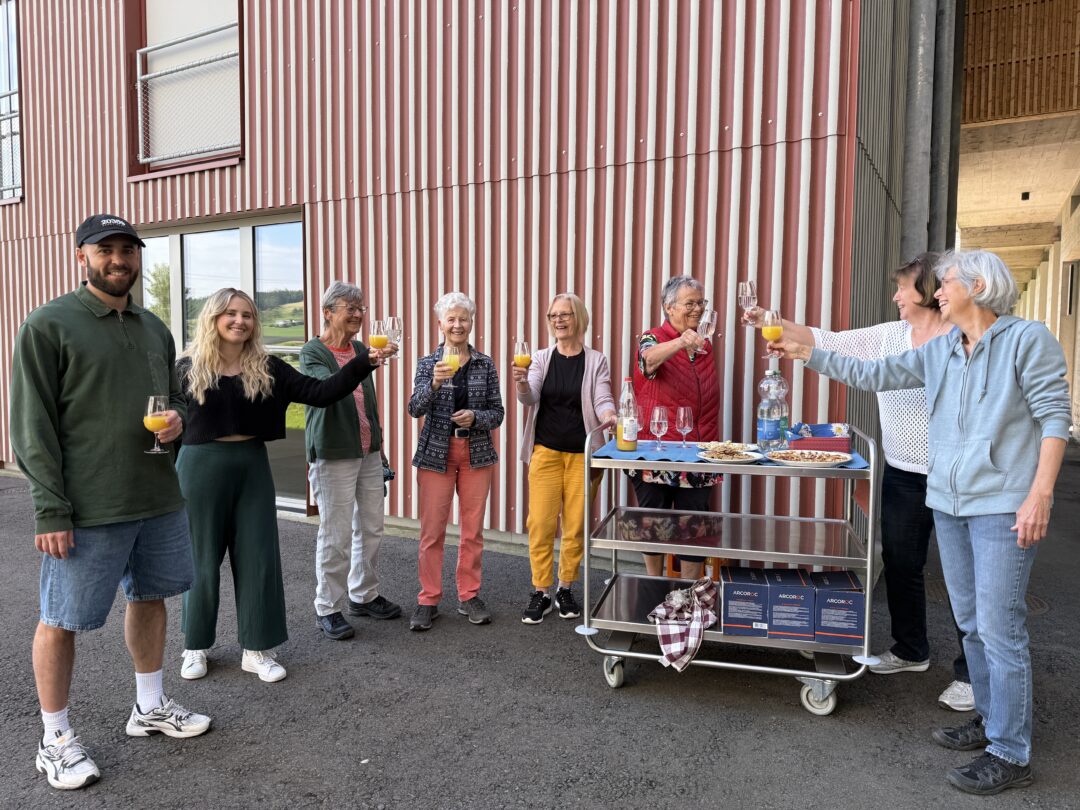 Nach der Inbetriebnahme und Erklärung durch Anja Schenk stossen einige der frewilligen Helferinnen auf das neue Projekt an.