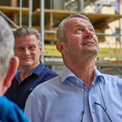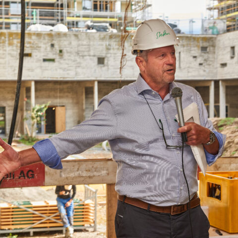 Die Verantwortlichen von Wohnen im Bethlehem feierten das Aufrichtefest der vier Gebäude der ersten Bauetappe der neuen Wohnsiedlung in Immensee gemeinsam mit den beteiligten Bauunternehmungen.