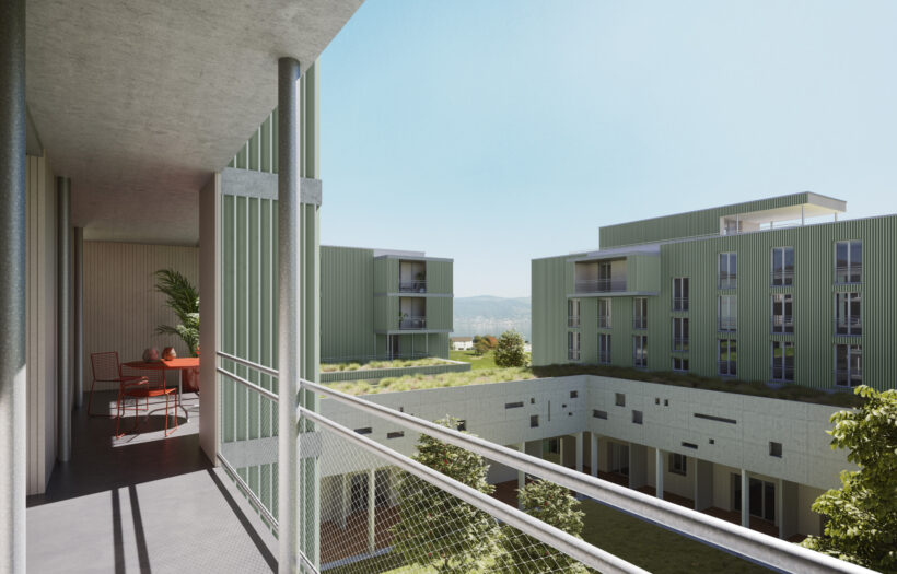 Der Bethlehemhof bildet das öffentlich zugängliche Herzstück der Pioniersiedlung «Im Bethlehem» und wird zentraler Begegnungsort des neuen Quartiers.
